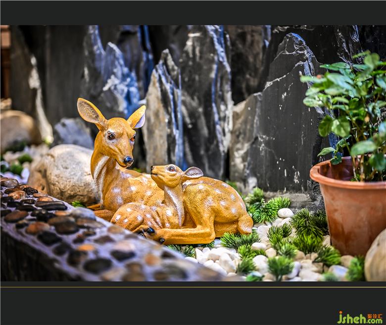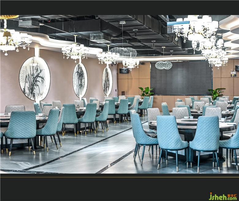 包廂過(guò)道燈上作畫,畫中有景,水墨燈光,曳致生輝,壁畫主題分明,斑斕中窺得一絲祥和。包廂華燈映射到墻上的山水畫,靜謐而溫和,莊重中透著一絲素雅。餐廳設(shè)計(jì)