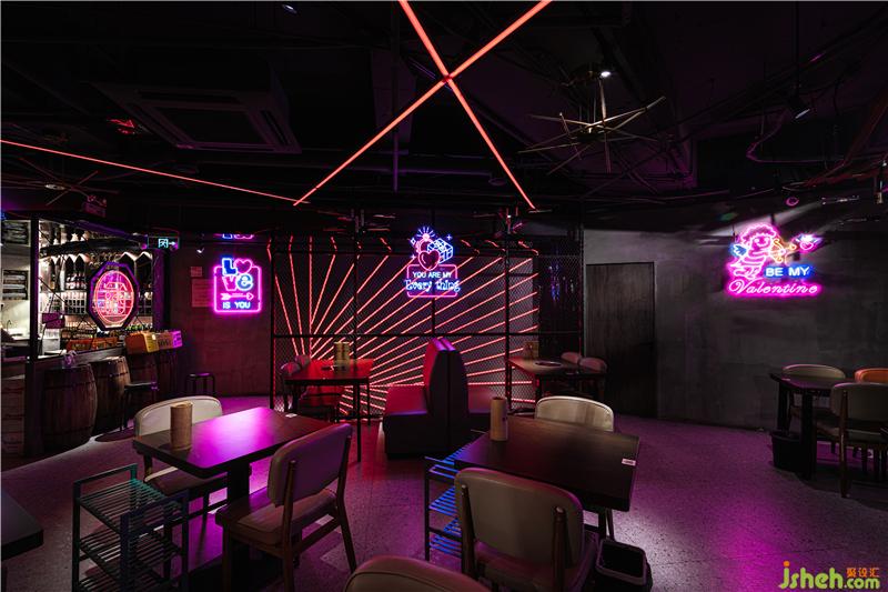 主要用材:鏡面不銹鋼板。霓虹燈,吸音板,百色熊美國涂料,兔寶寶木工板