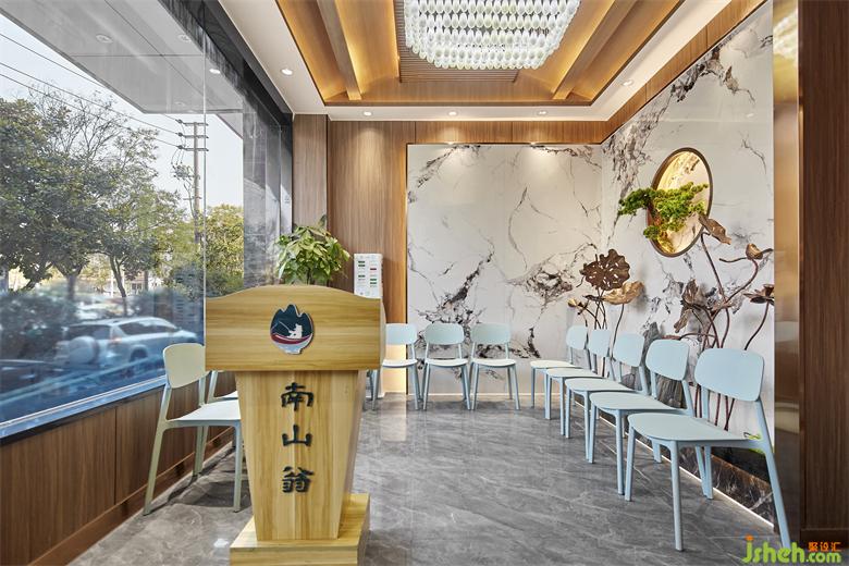 圓弧卡座區(qū)旁的裝飾,是具有川西文化的古建筑屋頂;四人卡座區(qū),是帶有中式文化的“南山翁”古風(fēng)吊燈;餐廳設(shè)計(jì)如波浪般的水晶吊飾,是孕育南京文化的秦淮河在蕩漾。這些,都是用符號(hào)構(gòu)成的文化屬性,設(shè)計(jì)者將這些具象的實(shí)體提煉變異,轉(zhuǎn)化為空間中的抽象表達(dá),凝練成設(shè)計(jì)語(yǔ)言。在展現(xiàn)新概念川菜的同時(shí)融入南京地域文化,體現(xiàn)“南山翁”的品牌在文化傳承的時(shí)間長(zhǎng)河里,屹立不倒,“壽比南山”。