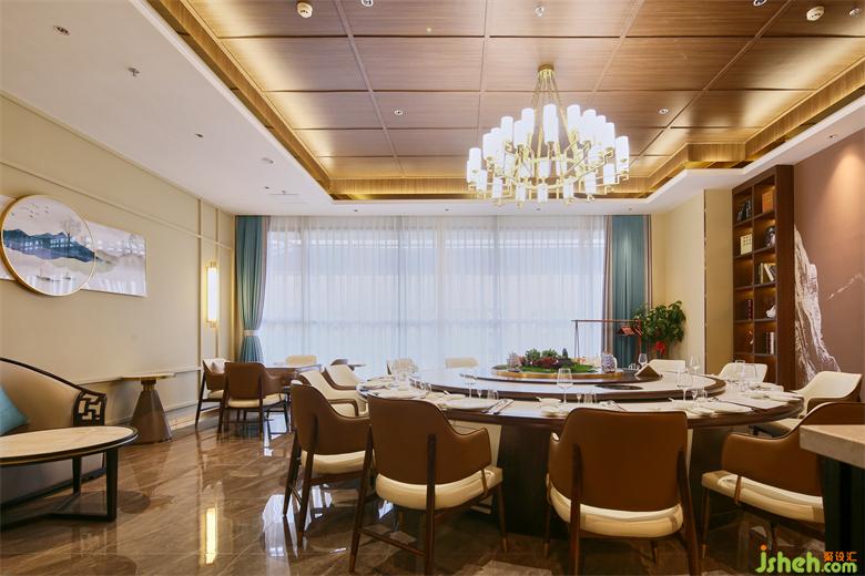 在海韻鮮風(fēng)空間景觀里,深海與大陸的交匯被巧妙地呈現(xiàn)出來。海鮮餐廳設(shè)計(jì)空間以海洋元素為本,又以人文氣息與空間藝術(shù)為底蘊(yùn),在造型上以垂釣式的吊燈為主,輔以射燈或筒燈等,營造一方層次分明的“光彩”空間,為空間注入輕盈明亮的氛圍感。豐富的紋理傳遞出細(xì)膩的質(zhì)感,讓空間于細(xì)微處熠熠生輝。