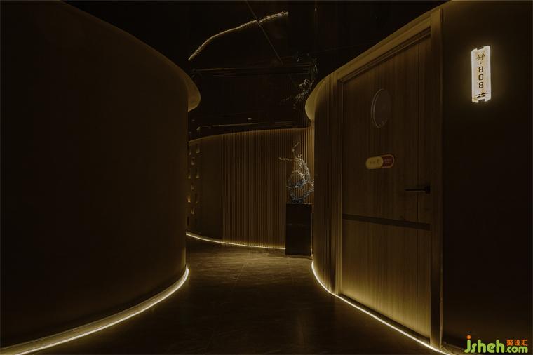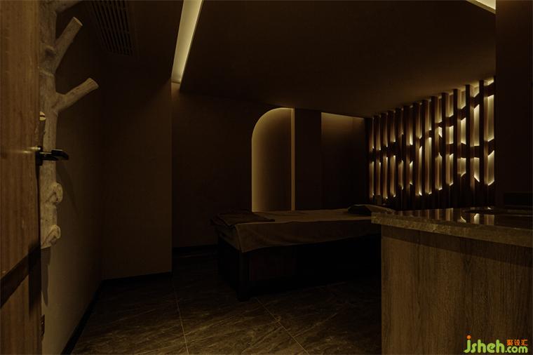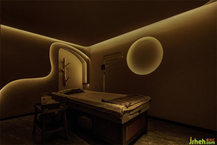 大片的花海之下,映襯著無規(guī)則的燈帶大門。養(yǎng)生會所設(shè)計以光影為敘述語言,在橫向通透,縱向通達(dá)的空間里,通過光影渲染給空間注入力量與生命靈性,創(chuàng)造出新的生機(jī)。