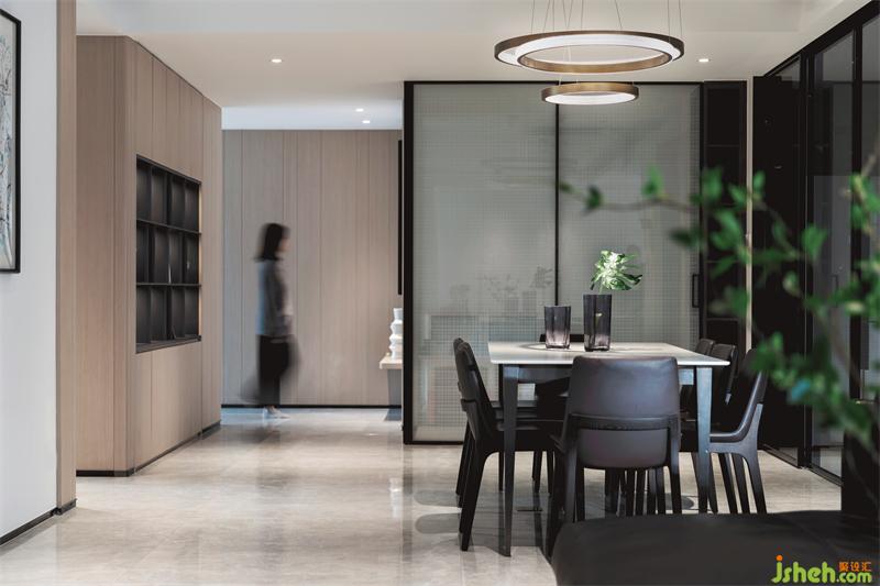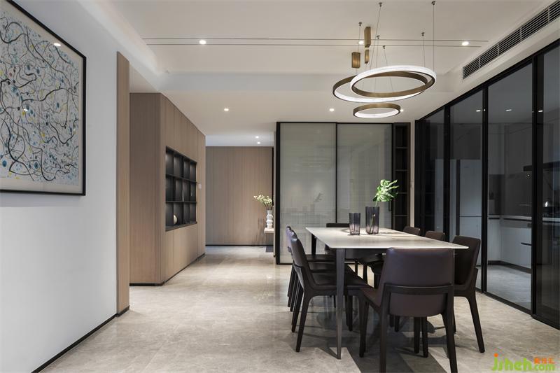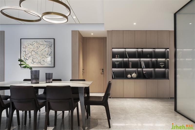 低飽和度的灰為主基調(diào)色系,以暖色的原木飾面裝點空間,隱隱散發(fā)出溫和的氣息。深圳裝修設(shè)計整體空間在石材與木色中尋求一種暖性的色彩平衡,同一色系的不同色 階過渡中,既富有色彩明度的變化,又將色調(diào)完美協(xié)調(diào),觀感柔和,并通過精心安置的照明與隱約可?的細(xì)節(jié),營造出安然于心的舒適空間。