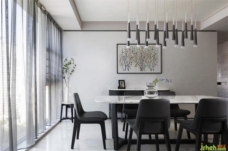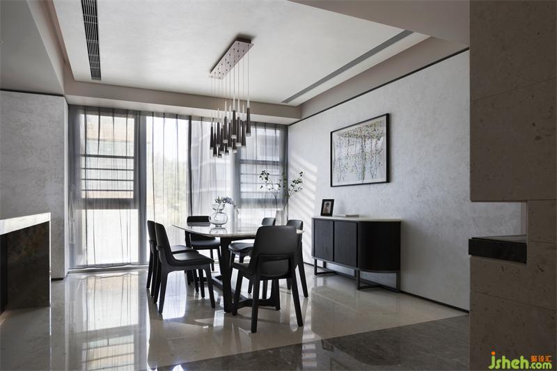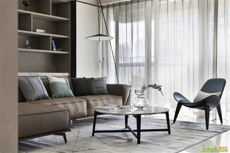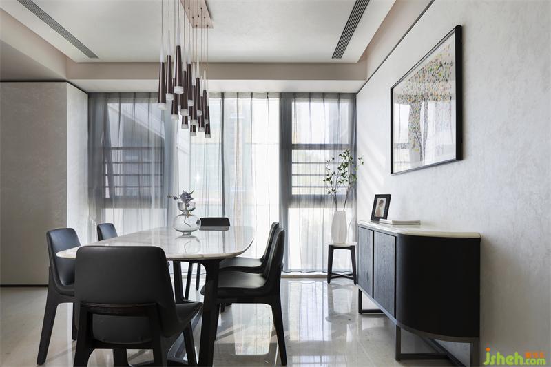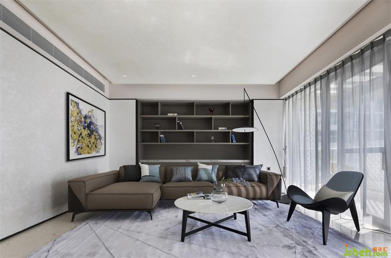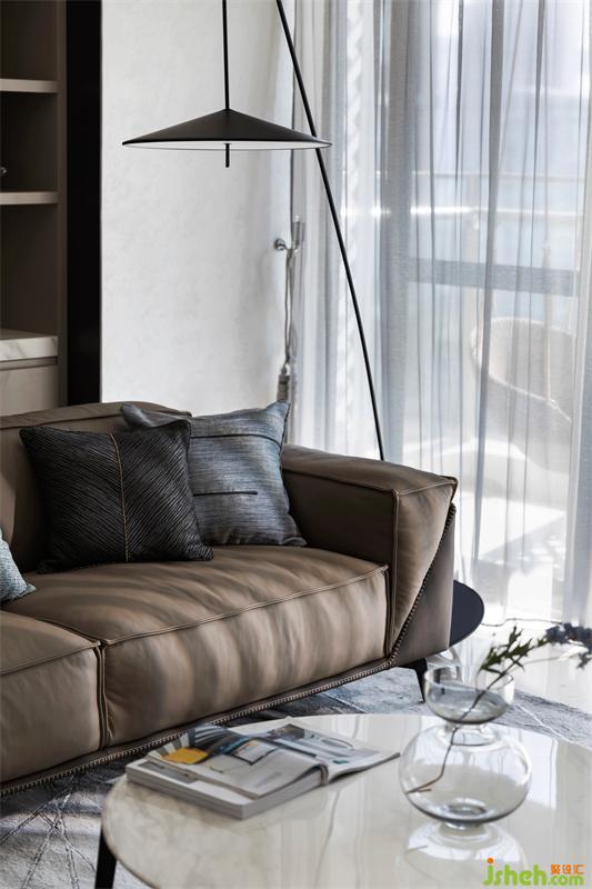 整個(gè)客廳墻面留白,延伸東方美學(xué)與時(shí)尚的融合,穩(wěn)重的褐色貫穿其中,形成高反差的色調(diào)對(duì)比,在追求當(dāng)代生活方式的同時(shí)不忘將東方美學(xué)融入其中,回歸生活本質(zhì)。