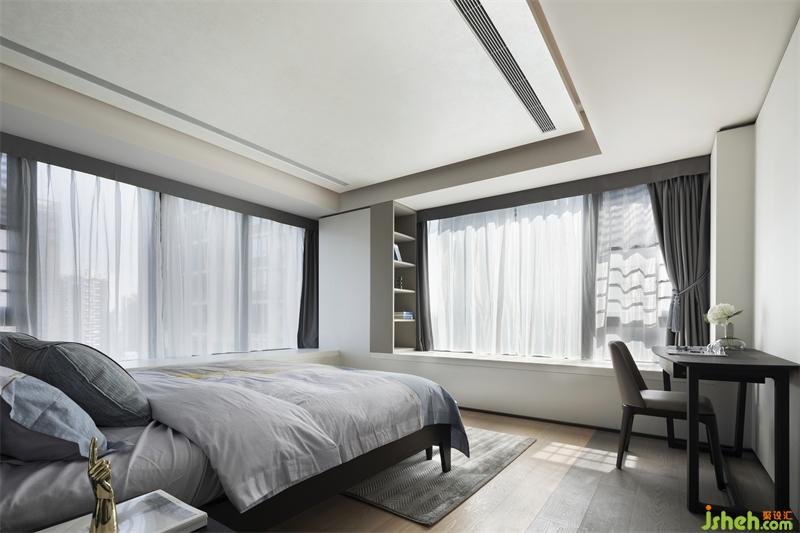 書房是男主人的私人領(lǐng)地,同樣延續(xù)空間的主色調(diào),私宅設(shè)計師創(chuàng)造了一個與世隔絕的獨(dú)處空間它不僅僅是一個書房也是一個靜謐的、自我治愈的冥想空間。