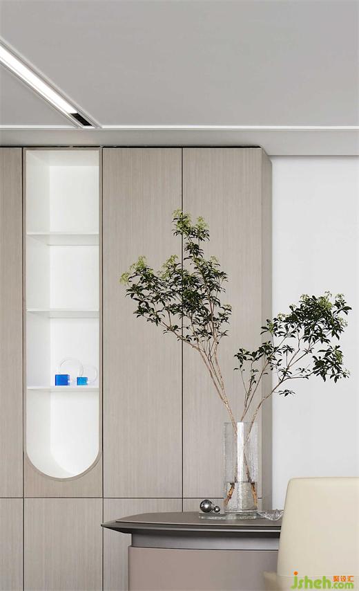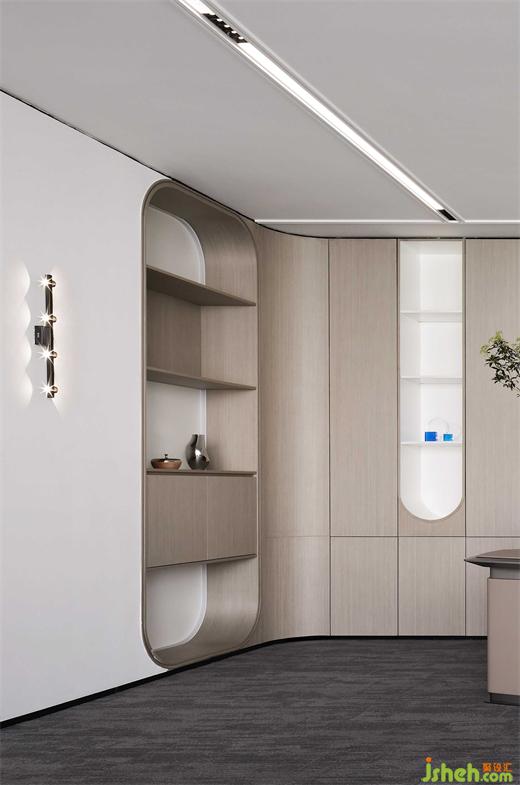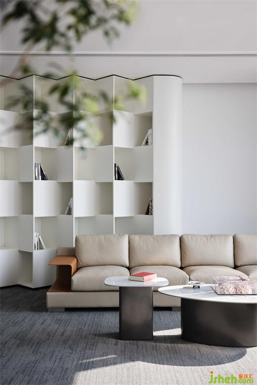 創(chuàng)始人楊總工作之余喜歡博覽群書,設計延續(xù)整體格調(diào)量身定制了一個兼具收納、環(huán)保、審美的大面積墻體書柜,突出明與暗、凹與凸的對比,善擇基金辦公設計流露優(yōu)雅大方的氣質(zhì)。