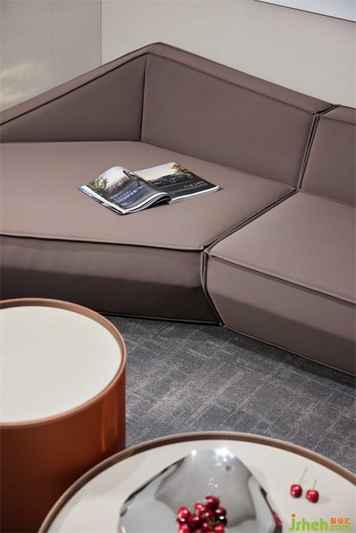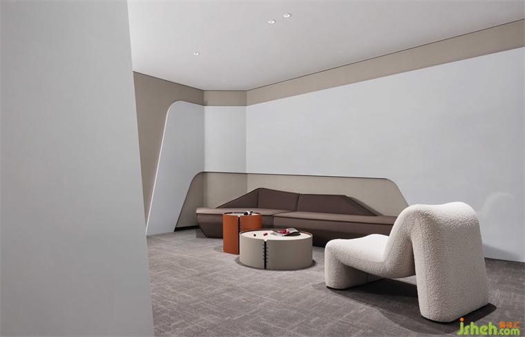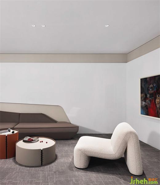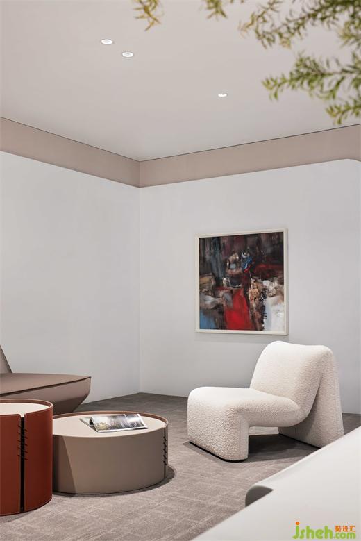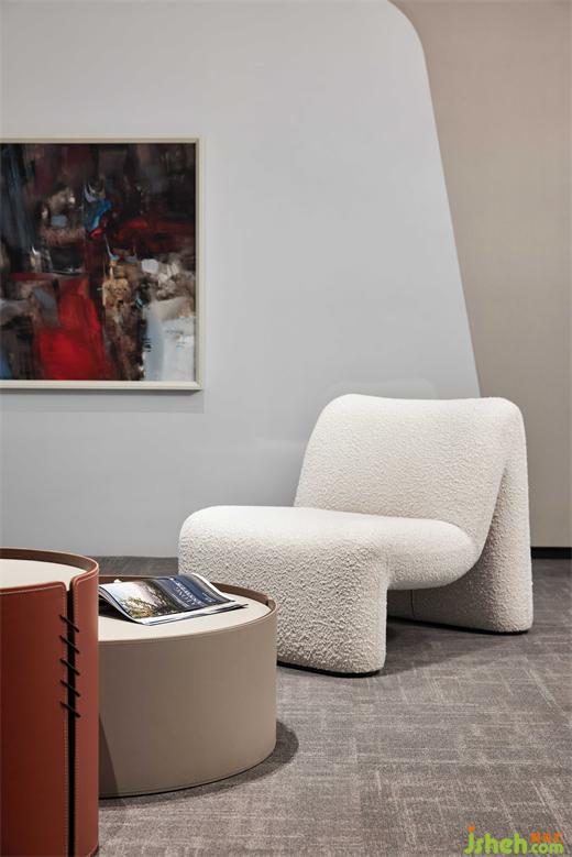 泡泡面料的單椅沙發(fā),有著豐富的肌理,和簡潔的造型構(gòu)成,愜意、舒適而不失商務(wù)型格;辦公總部設(shè)計與抽象而濃烈的掛畫,形成一個極具感染力的角落,反映設(shè)計、功能與情感之間的平衡。
