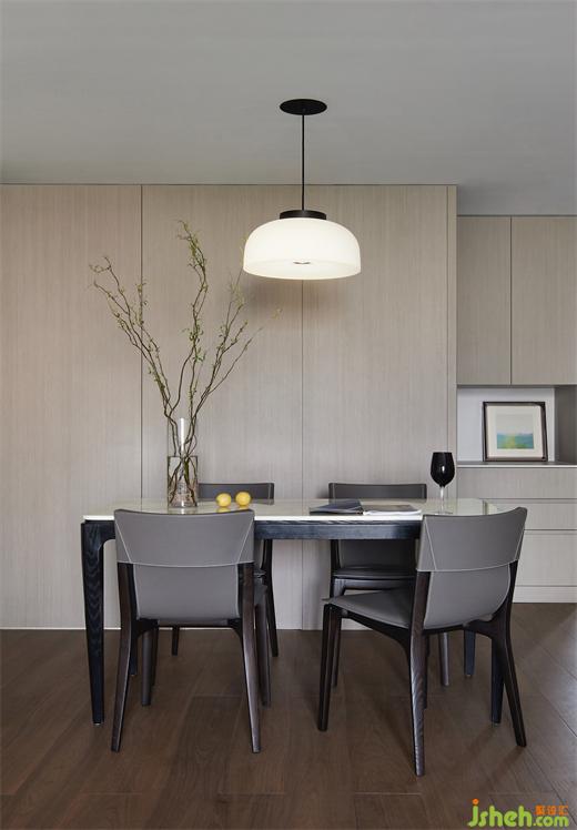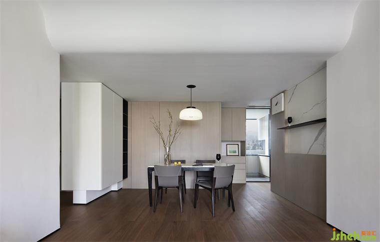 餐廳做了大面積隱形收納柜體,時刻保持整潔有序。餐桌椅用了多年,木頭留下了溫潤的使用痕跡,也適合現(xiàn)在餐廳的風(fēng)格。