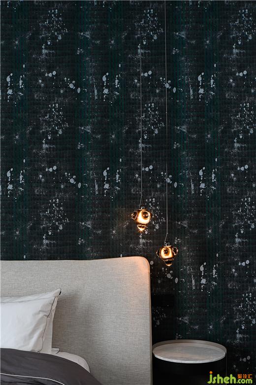 別墅裝修設(shè)計(jì)住宅臥室位于二層和三層,低飽和度色調(diào)營(yíng)造出平靜安逸的情緒空間。房間擁有遼遠(yuǎn)視野與充沛陽(yáng)光。主臥床后的背景選Wall&decò的做舊紋理墻紙,中間穿插湖綠色的紋路,好像是老建筑遺留下的一堵墻,對(duì)空間故事線(xiàn)再次做出提示。