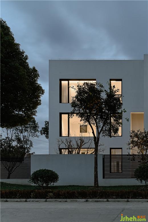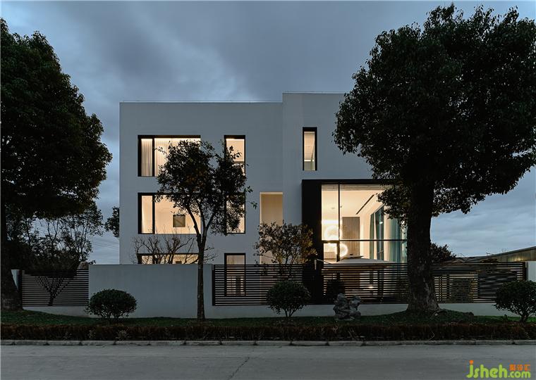 外部是平直的白色線條,內(nèi)部是低飽和度顏色調(diào)搭配簡單的幾何空間,由此一來,這棟鄉(xiāng)村住宅整體便具備現(xiàn)代極簡的屬性,別墅裝修設(shè)計浸入中國南方的鄉(xiāng)村環(huán)境中既突出又和諧。