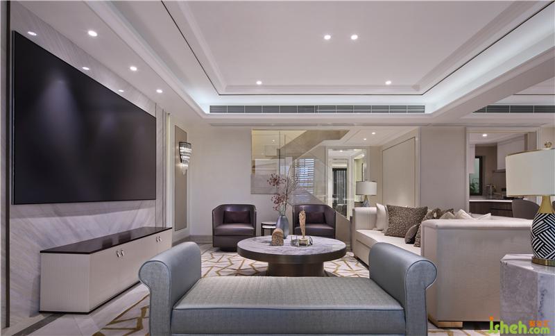 樣板間的色調(diào)是情感激發(fā)最直接的因素,也是風(fēng)格化最直接的表現(xiàn),經(jīng)典港式的配色最直接的是各種材質(zhì)偏咖幾度,我們這一次,往灰度偏了一點,取巧當下之流行。