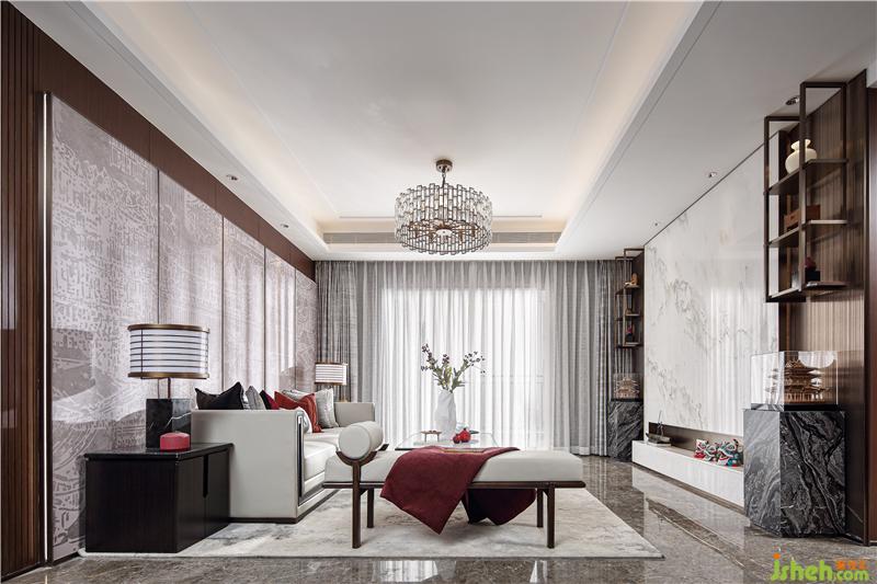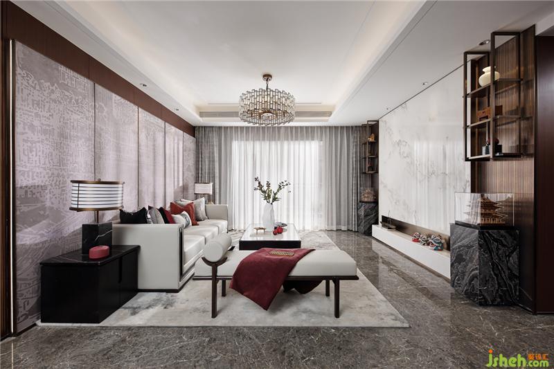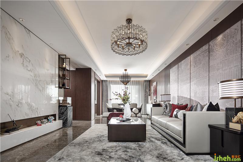 建筑戶型非常的契合潮汕人居習(xí)俗,入戶后客廳大、陽臺大,方正通透。設(shè)計師在一開始客廳的軟硬裝上奠定了整個戶型風(fēng)格的基礎(chǔ),現(xiàn)代的手法與傳統(tǒng)風(fēng)俗文化的演繹。皮雕、山水玉石、扁舟、揭陽樓、舞獅~中式輕奢,新潮汕人家。