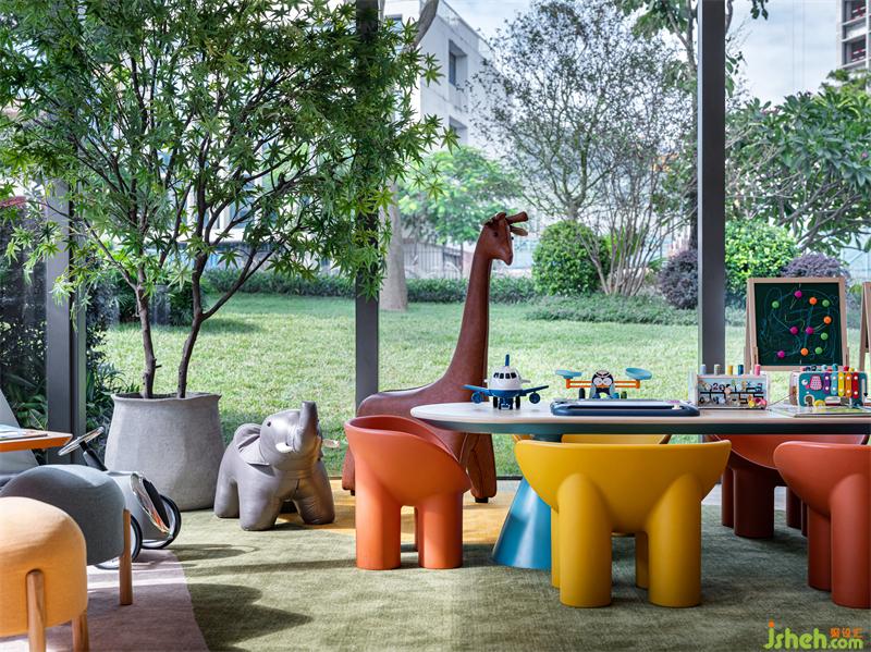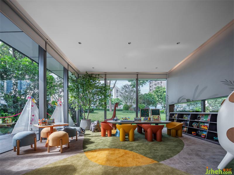 售樓處設(shè)計洗手間過道以當(dāng)?shù)丨h(huán)境特點(diǎn)為靈感,模擬山林隱逸的生活環(huán)境,立體出世,抽象而不抽象。螞蟻的觸角在試探正如兒童的對未來無限未知的興趣,兒童區(qū)的山林趣味性。