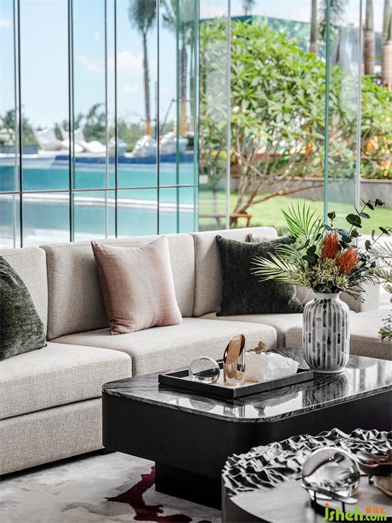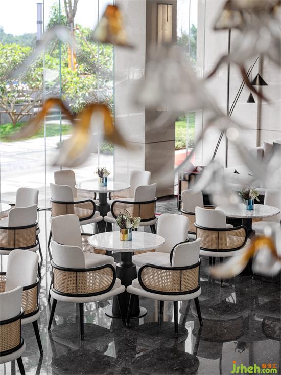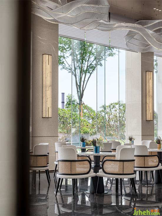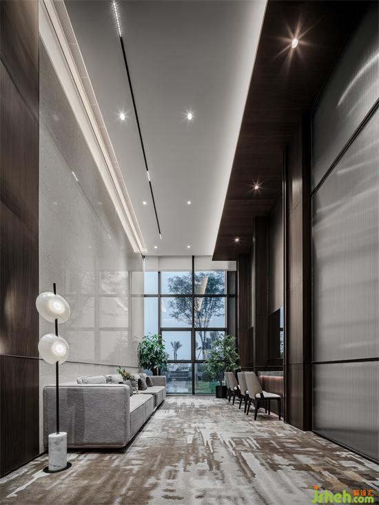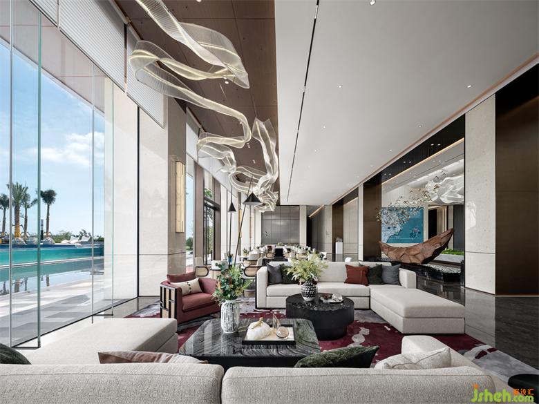 整個(gè)空間與戶外景觀融合,用靜水、倒影與建筑的對(duì)話,招商體驗(yàn)中心設(shè)計(jì)來(lái)呼應(yīng)項(xiàng)目的本身的氣韻利用深邃的暗殊砂紅色新東方藝術(shù)和藤棕天然材質(zhì)點(diǎn)綴其中,強(qiáng)調(diào)連貫性的同時(shí)塑造出更深層次的視覺(jué)體驗(yàn)。