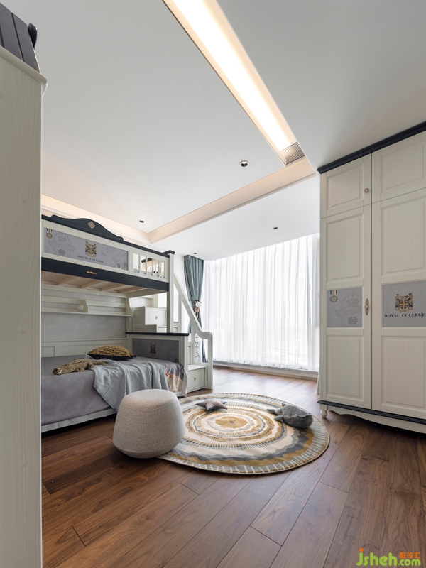 Pure light blue, warm orange, deduce the purity and vitality of youth, Musical Instruments, earphones and fashionable toys collide into an interesting art world, the design of the eldest son's room is free and full of vitality, just like our youth without too many constraints, the future is full of infinite possibilities.