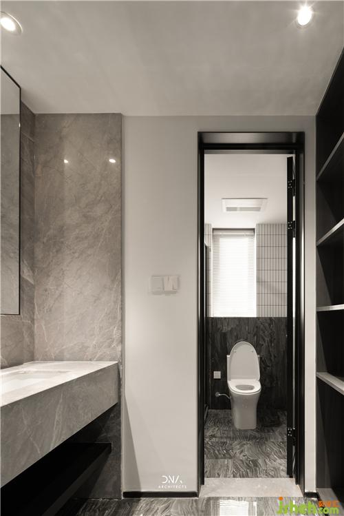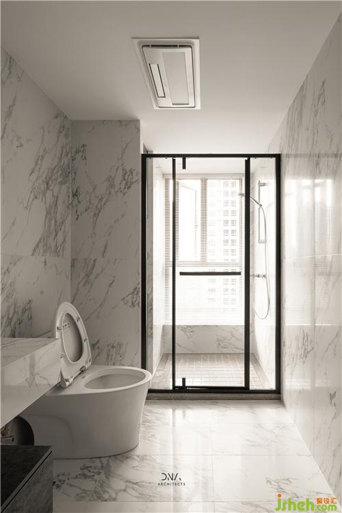 公衛(wèi)墻面、地面由同一款石材花紋瓷磚一體鋪貼而成,簡(jiǎn)潔又均衡。