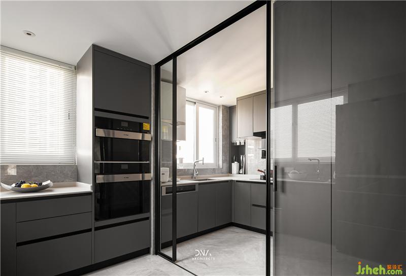 原北面陽臺(tái)被改造成西廚空間,承接了餐廳和廚房之間空間過渡杭州室內(nèi)設(shè)計(jì)師,原本較小的廚房空間也得到極大的擴(kuò)展。