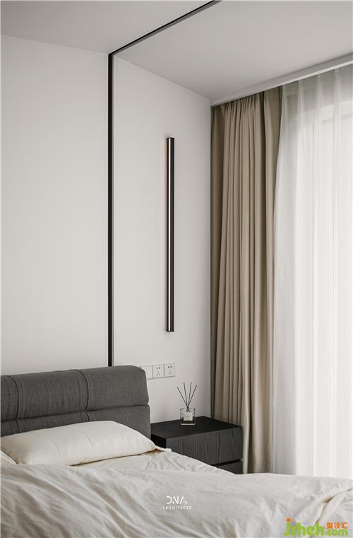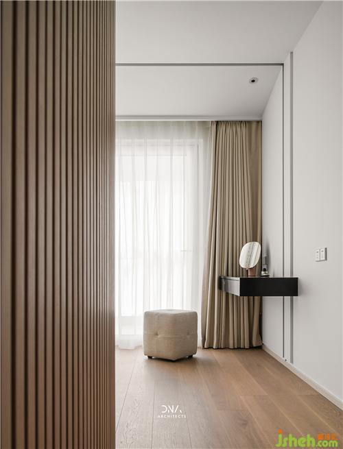以白色和木色兩種簡(jiǎn)單的材質(zhì)來表達(dá)整個(gè)臥室空間的安靜、平和,加以強(qiáng)烈的線條感來進(jìn)一步刻畫細(xì)節(jié)輪廓。