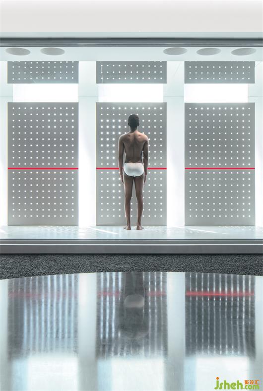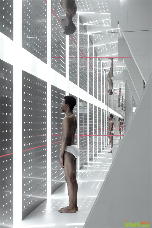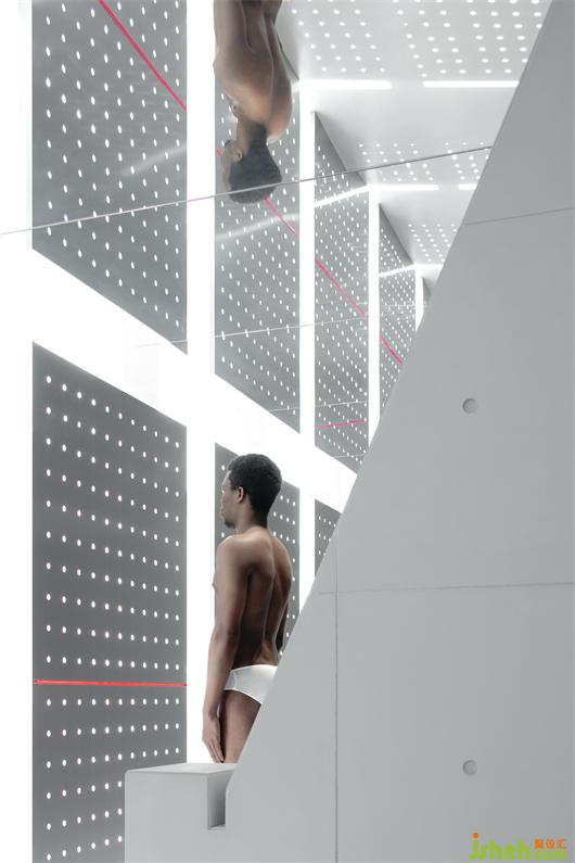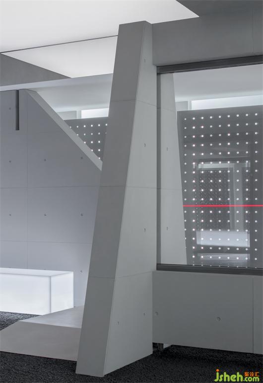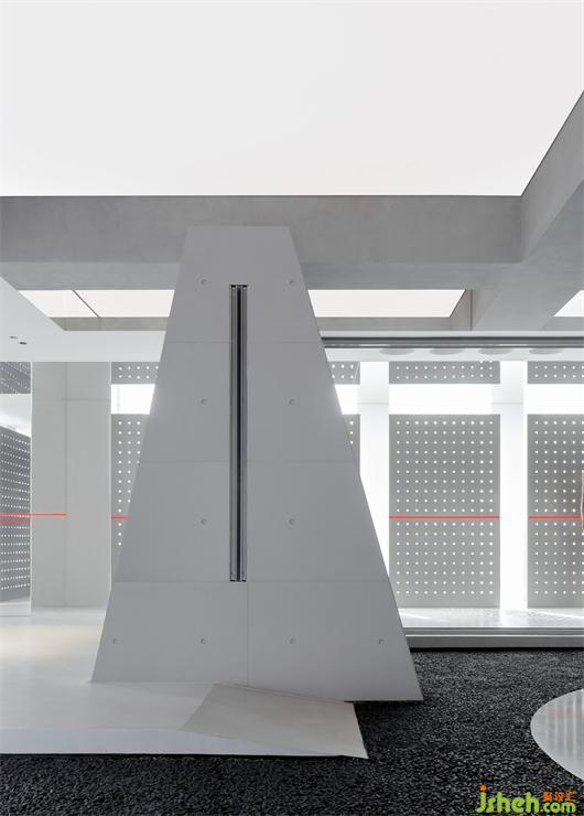 黑色火山石的地面,從布道開始給人以空間的肅靜,展廳設(shè)計(jì)以不喧鬧的姿態(tài)去感受和觸摸。黑色的石材鏡面,擬湖水,給這個(gè)腳下更多的感官體會(huì),給這個(gè)空間更多的人為自然。