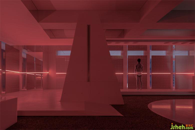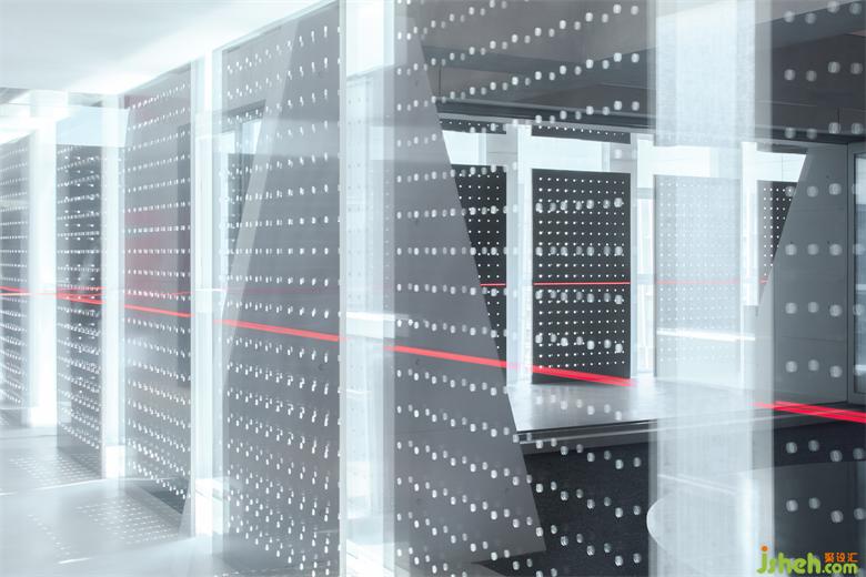 沖孔鋁板的存在建立了更直接的屏障去實(shí)驗(yàn)內(nèi)外的相對(duì)性,同時(shí)它是光影的途徑,展廳設(shè)計(jì)是將陰影的形狀和明暗的交替給直接表達(dá)給我們的載體。