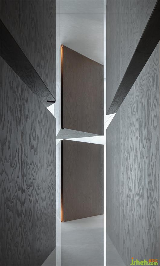 該項目位于寫字樓內(nèi),我們首先想要打破層高與面積的束縛,以空間內(nèi)殼的擠壓再爆炸,以軸線的無限延展,去塑造渾厚的空間體量,以帶來具有沖擊力的視覺初體驗,去消除寫字樓局促的內(nèi)部建筑,以及它內(nèi)收的屬性狀態(tài)。