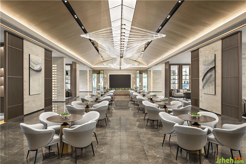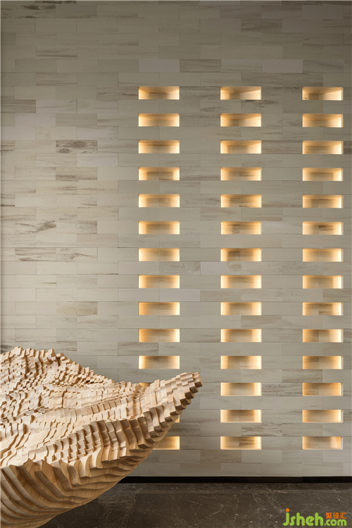 設(shè)計師將人們所熟悉的傳統(tǒng)構(gòu)件加以抽象、裂解和變形,使之融合敦煌巖彩藝術(shù)與燈光,成為象征新與舊、今與古的符號,并在室內(nèi)元素中拼貼運(yùn)用,成為媒介,構(gòu)建起觀者與時空在精神層面上的對話。