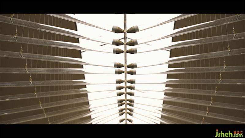 洽談區(qū)的機(jī)械互動藝術(shù)裝置《未來之槳》用科技賦能,讓參觀者以天花為船,融時空于水,踏上地板,前后走動時,蕩起光線的漿,移步換景。目之所及,是山海藝術(shù)會館的奇思妙想,像鯤鵬潛碧海,泳滄流,游弋于物外,思考在其中。“未來之槳”延續(xù)的是往日之精神,以科技之光載去更廣闊的天地遠(yuǎn)航。