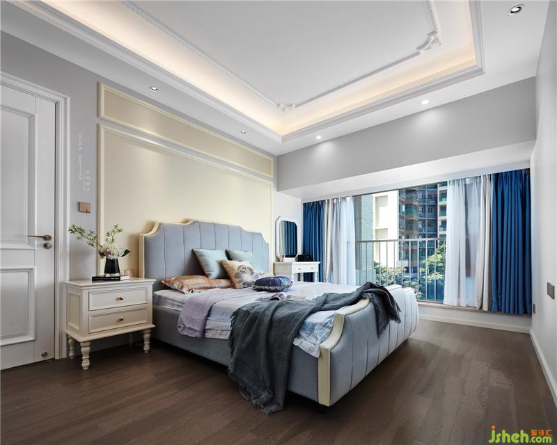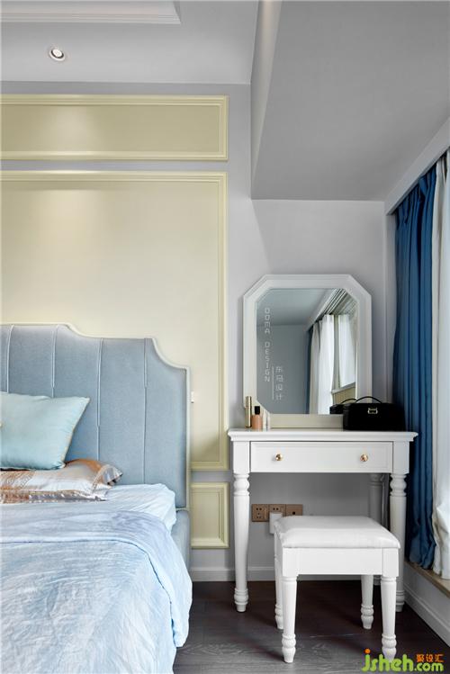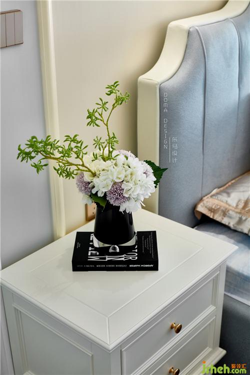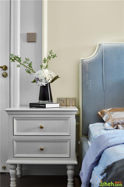 在色調(diào)上跟客廳統(tǒng)一協(xié)調(diào)。家私選用莫迪蘭色系,硬裝與軟裝在色溫上的碰撞,二者完美地銜接。