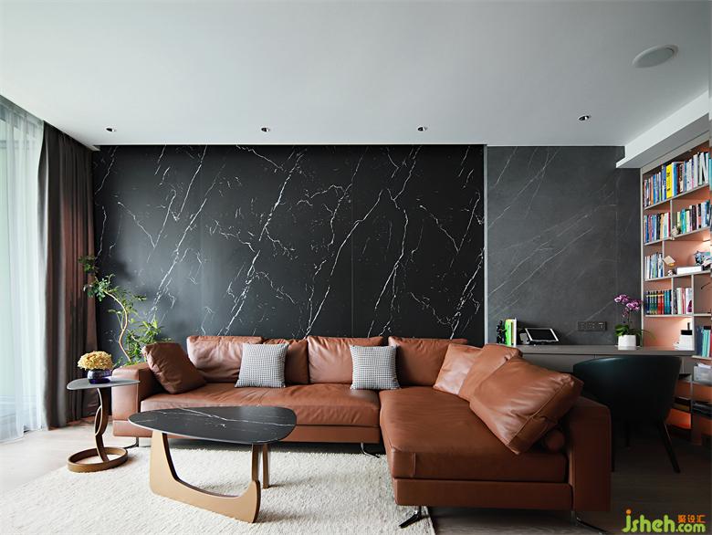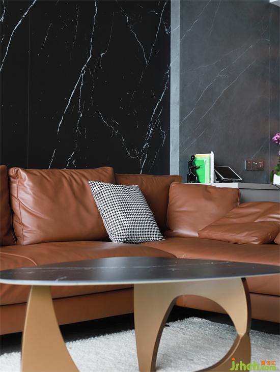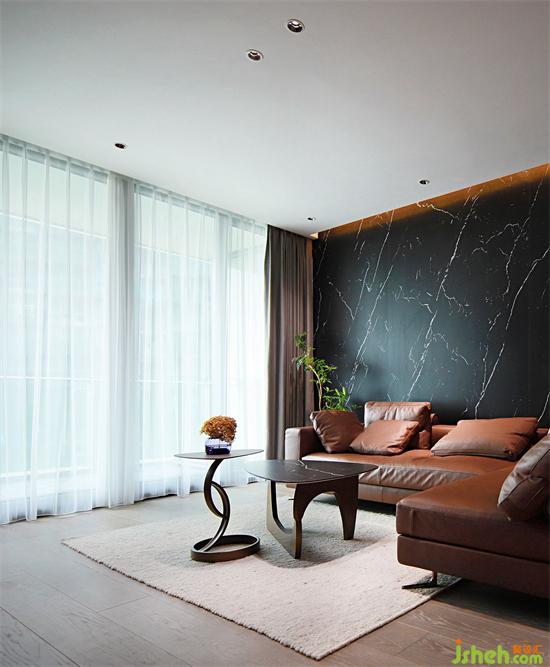 Comfortable space atmosphere can feel the comfort of home, but also can put down the inner fatigue, showing the most comfortable inner life. The eclectic mix of dark colors and wood colors adds mystery and modern flavor to the space, making the space appear pure and natural. Stepping into the living room, a strong sense of relaxation and mystery envelops the whole space. Brown sofa, exquisite coffee table, minimalist plane ceiling, and the concave and convex paving of grey and black rock slabs create a different three-dimensional feeling for the living room.