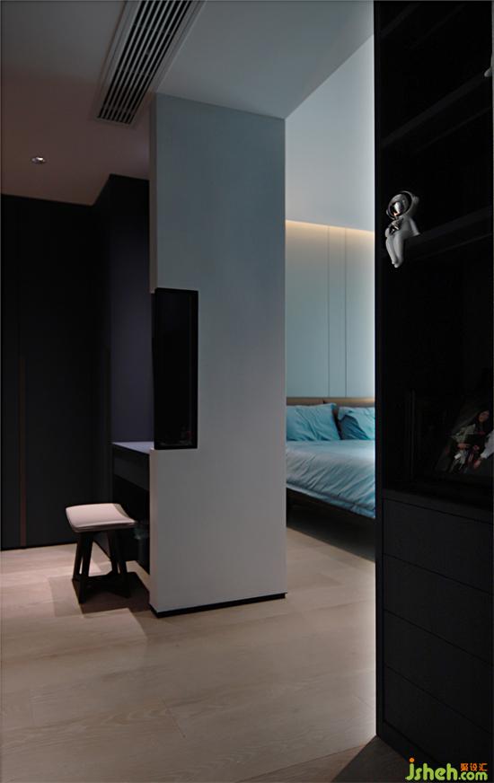 No main light design to expand the space vision, highlighting the spatial hierarchy. The TV wall invisible door into the master bedroom, the darkness of the whole space, and the grey bed background and bed echo each other, soft vision at the same time for the space to add bright eyes, the belonging of the body in the space, with quiet, stable, gentle atmosphere to present the nature of life, in the quiet moment, hidden deep poetry. Space contains all people, immersed in the beauty of life.