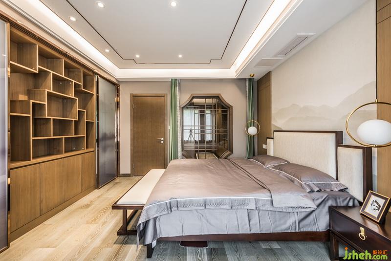 主臥從色彩搭配和材質(zhì)面料的選擇上,都十分的考究。,整體的色系采用溫暖的低飽和度顏色作為搭配,,結(jié)合不銹鋼線條的搭配,,讓整個(gè)空間充滿氣質(zhì)感。