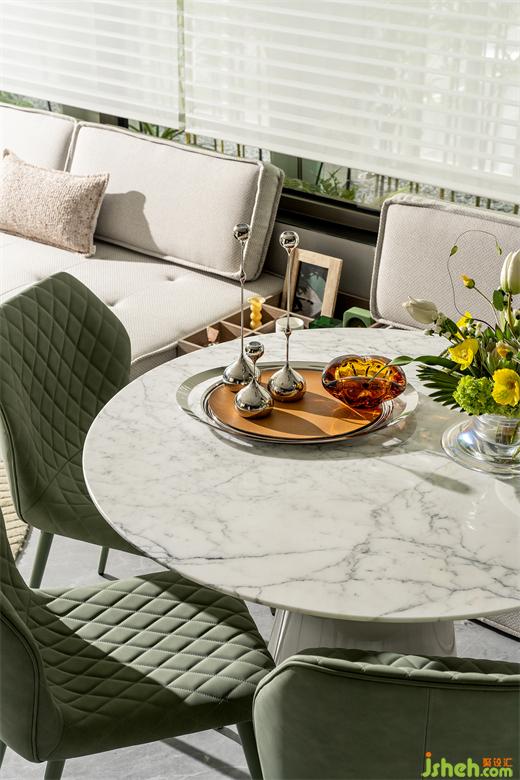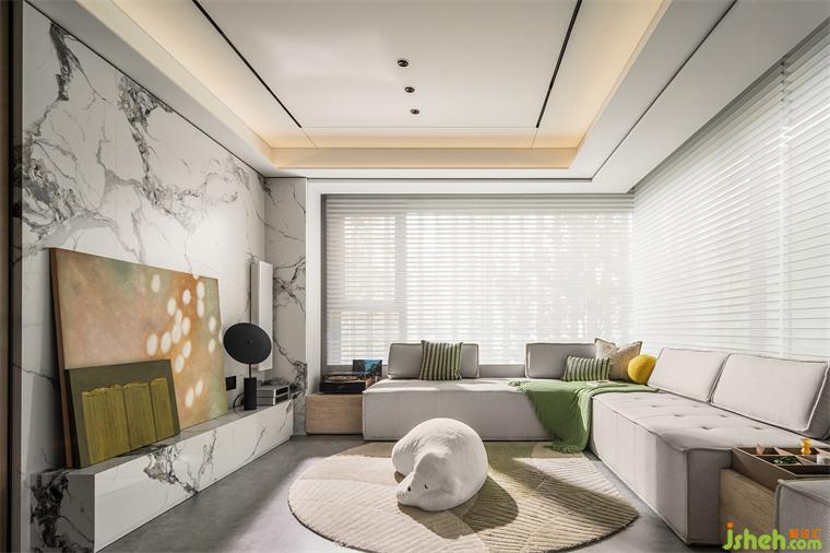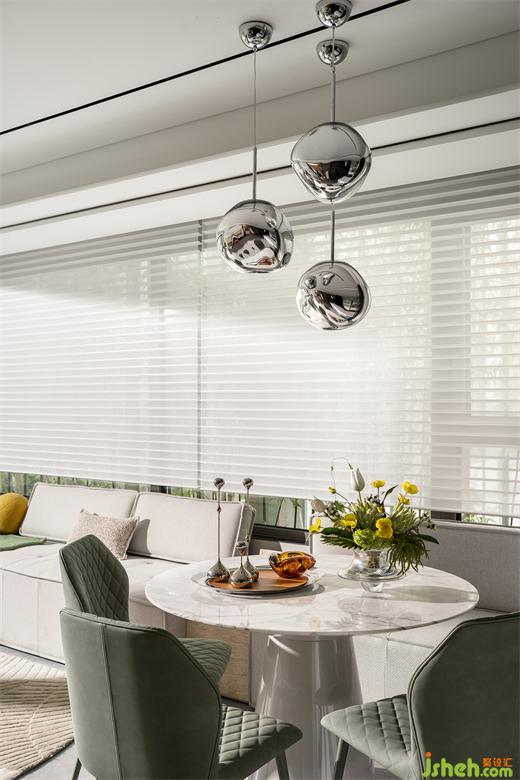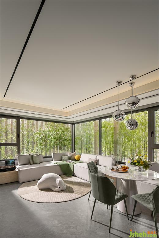 釋放負(fù)荷,生活恣意??蛷d空間光與影來回交替,動與靜地變幻,光影游走,樣板間設(shè)計賦予空間清新脫俗的氣質(zhì)。