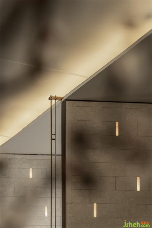 墻角下的燈帶,與踢腳線巧妙結(jié)合,為厚重的中式風(fēng)格融入當(dāng)代的輕巧,投射出詩意的光影,同時指引著動線的方向。設(shè)計師汲取古代宮燈的設(shè)計靈感,將古代的燈飾之美與現(xiàn)代的藝術(shù)審美巧妙結(jié)合,把空間裝點得更加文藝而富有韻味,并增添了一份莊重的秩序感和神秘的儀式感。