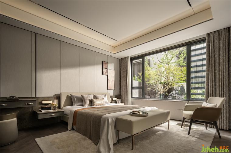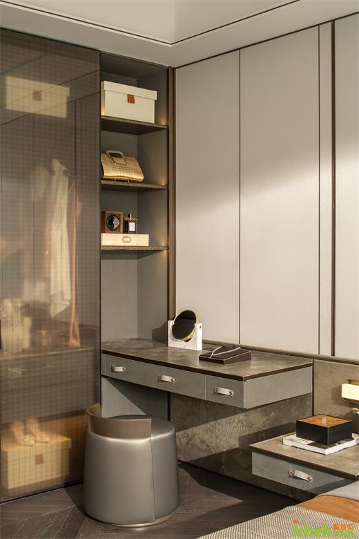 主臥衣帽間、單獨(dú)衛(wèi)生間以及梳妝臺(tái)的設(shè)置,樣板房設(shè)計(jì)滿足了實(shí)際的功能需求。品質(zhì)感家居產(chǎn)品和床頭柜細(xì)節(jié)營造,為主人提供了舒適的睡眠環(huán)境。