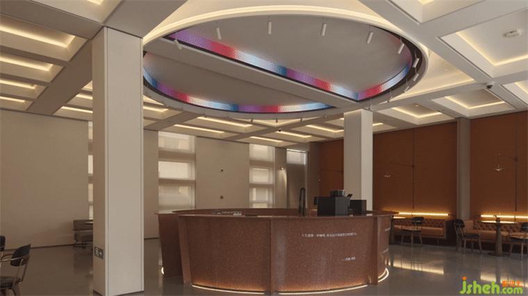售樓處設(shè)計(jì)延續(xù)空間既有的醇厚人文氣韻,將藝術(shù)元素活用于空間意境的營造中。天花層次與前廳方格相互平行,于結(jié)構(gòu)中流轉(zhuǎn)著無盡的建筑意蘊(yùn)。