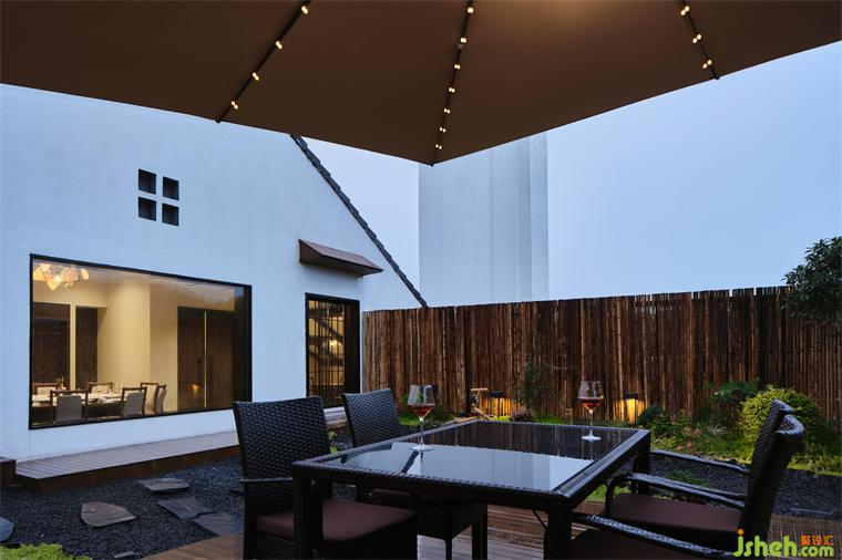 風(fēng)卷碧落,夢(mèng)遺繁華,淺色色背景墻之下,隨風(fēng)飄落而下的落葉,一路延伸開來(lái),蔓延了整個(gè)空間,這種詩(shī)意般的美好,讓人流連忘返?!扒度肷剿谟谧匀唬貧w初心,重獲生機(jī),獨(dú)居一隅,避開喧囂”。整個(gè)空間,并不是堆砌,而更是像是自然的圍合,含蓄之中,帶有絲絲風(fēng)雅。