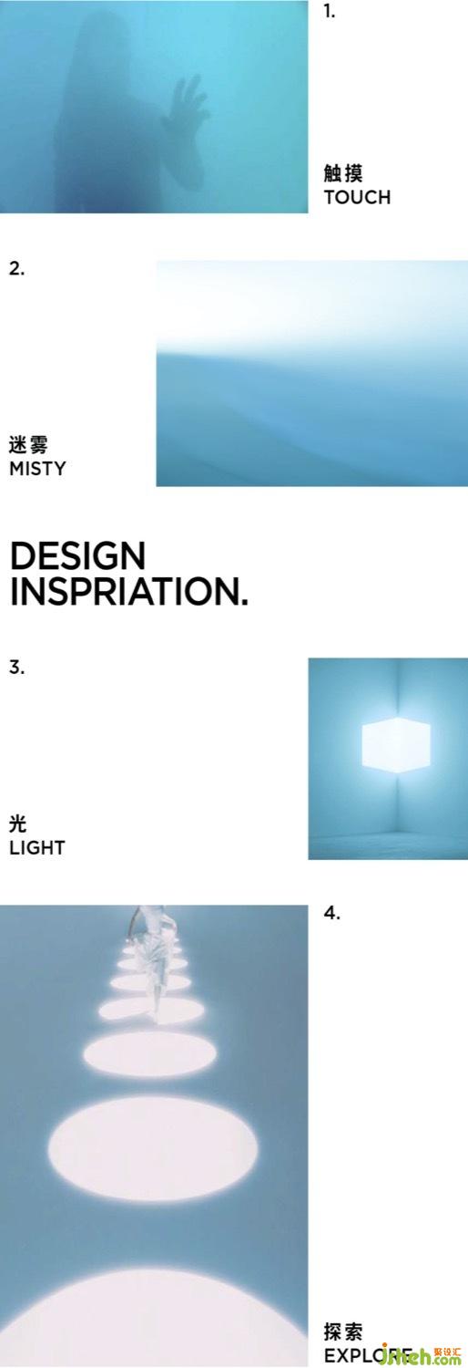The inspiration is coming from the light of fog, its hazy and mysterious during the whole space. The decoration and the space making together to create a dramatic atmosphere, the unique artistic installation, color and the lighting have created a subtle effect, and also to modeling the spirit and core in the space. The mist indistinct during the space that to make a beauty and attraction between the structure and the shadow of light whose the people come and explore.