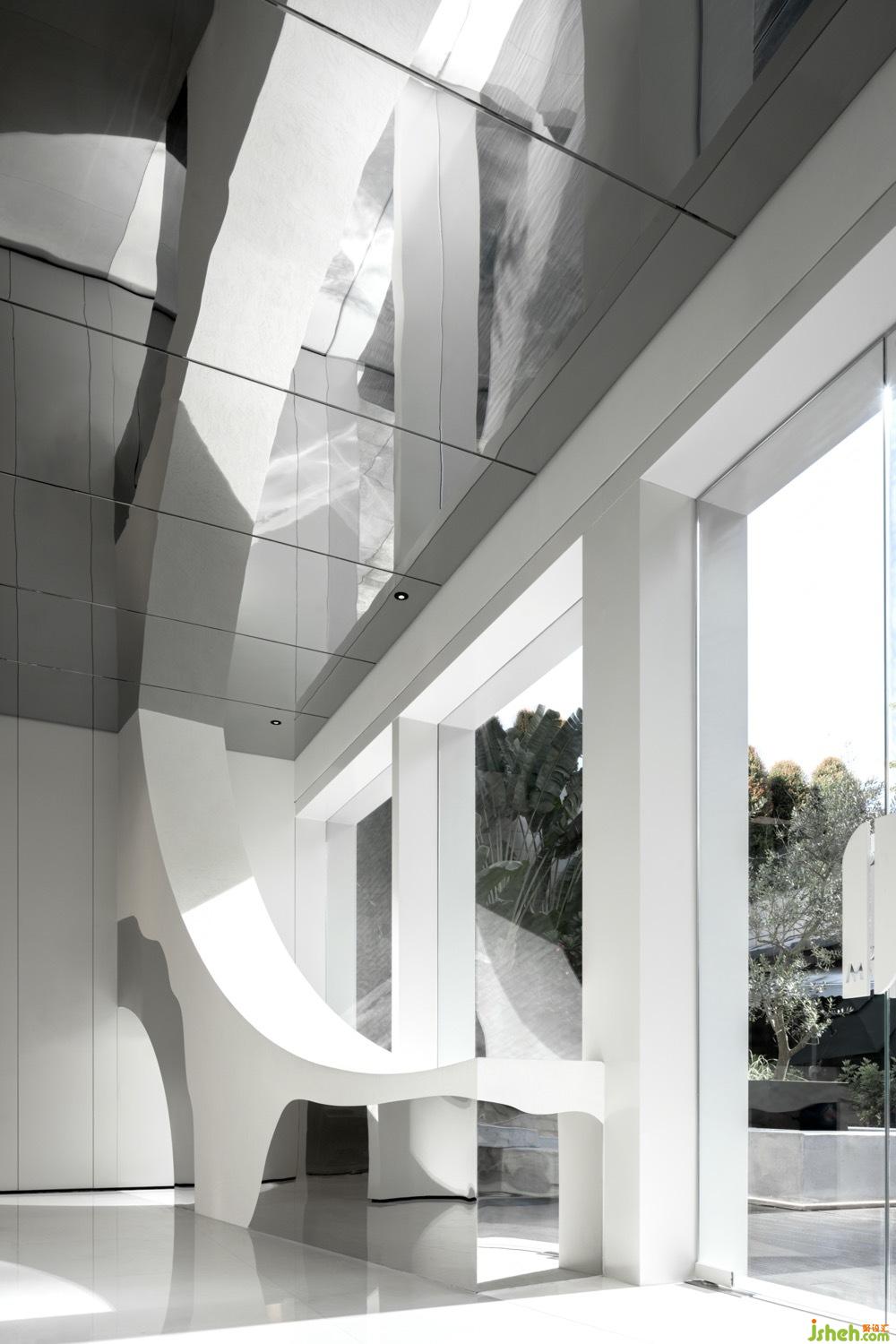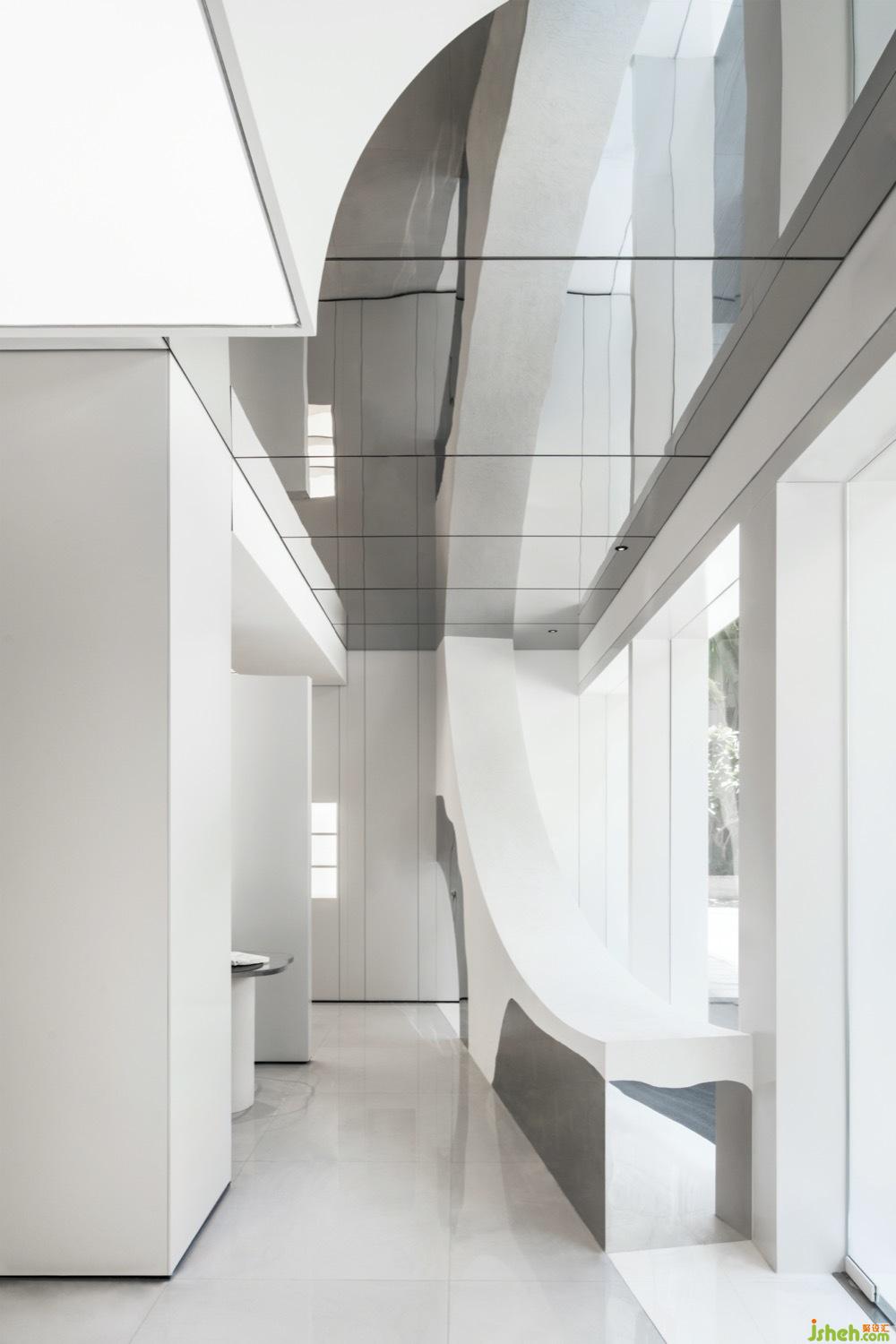 美發(fā)沙龍?jiān)O(shè)計(jì)以裝置性的弧形構(gòu)造,消解了原有空間的規(guī)則感,室內(nèi)設(shè)計(jì)師虛虛實(shí)實(shí)中改變了視覺焦點(diǎn),同時(shí)構(gòu)成了人與空間交流的新介質(zhì)