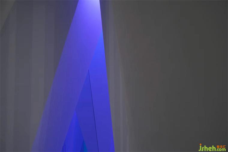 在建筑里創(chuàng)造幾何能量場(chǎng),旗艦店設(shè)計(jì)斜率結(jié)構(gòu)通過鏡面反射營(yíng)造視覺焦點(diǎn),線性聚合的盡頭充滿神秘,穿過長(zhǎng)廊進(jìn)入一個(gè)更廣闊的空間?!?△ ”和“ 〇 ”相互作用達(dá)到構(gòu)成的平衡,同樣無限循環(huán)的進(jìn)程帶來無限進(jìn)化。
