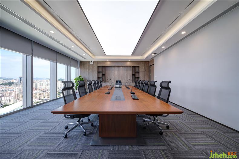 照明系統(tǒng)以天花上的大型LED光板配合燈帶、筒燈為主,即便是夜晚,辦公室設計會議室也能保持明朗舒適的環(huán)境