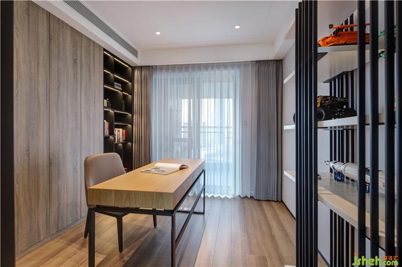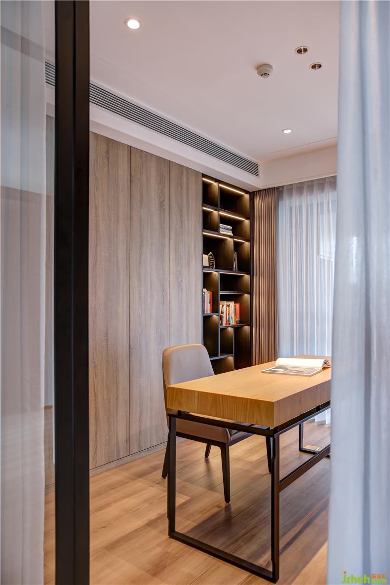 書(shū)房又稱(chēng)書(shū)齋,齋者,潔也,有高潔清雅之意。以木色的簡(jiǎn)潔樸質(zhì)為主脈絡(luò),空間不失內(nèi)斂穩(wěn)重