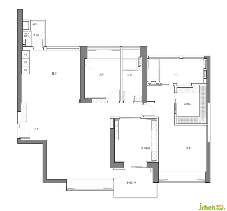 主體是深色木紋頂天立地大衣柜的衣帽間,以簡(jiǎn)潔實(shí)用的設(shè)計(jì)目的立意,不失都市生活的摩登氣質(zhì)室內(nèi)設(shè)計(jì)師