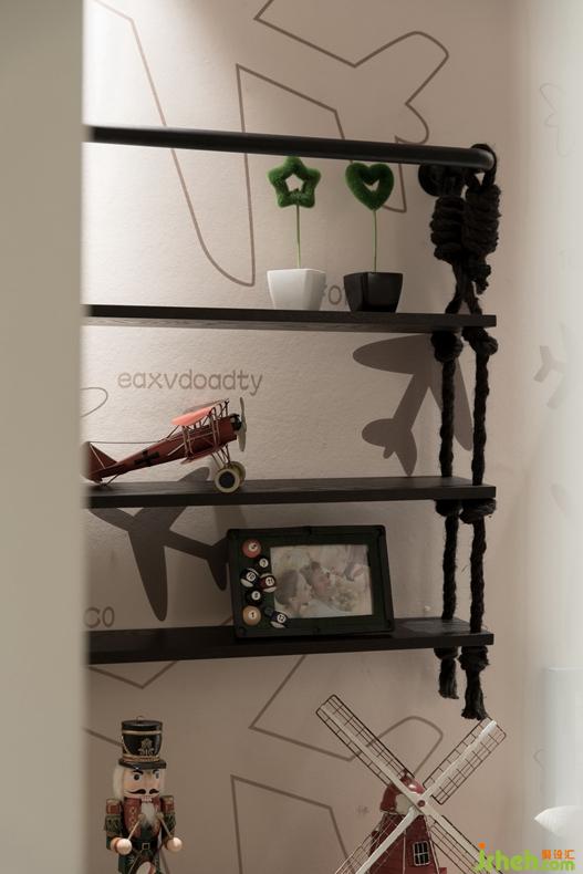 對于小孩房,設(shè)計師注重營造一個充滿趣味性的舒適空間,融入了刻有飛機卡通圖案的墻紙、經(jīng)典米字旗元素的地毯和抱枕,還有各種有趣的飾品掛件。