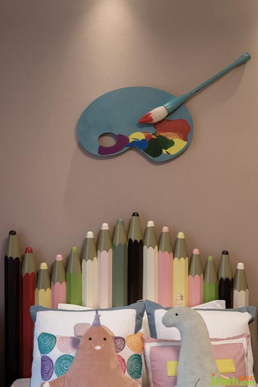 女孩房整體色調(diào)以粉、白色為主,融入油畫、彩色鉛筆等元素,凸顯了滿滿的少女感和趣味性。