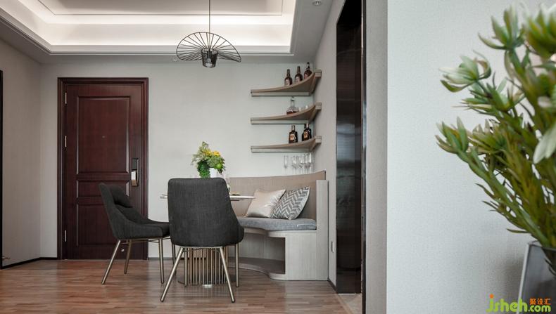 餐廳采用簡(jiǎn)約卡座設(shè)計(jì),不僅節(jié)省空間,同時(shí)具有收納功能,可用于儲(chǔ)物收藏。