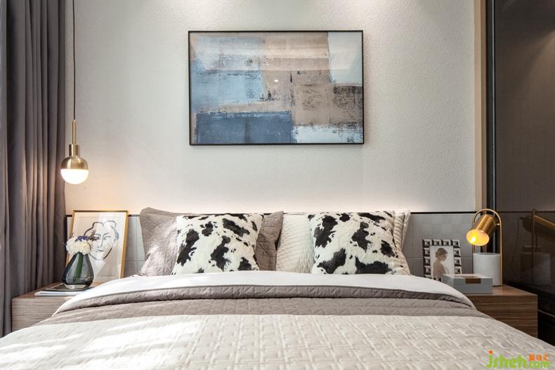 床頭暗藏的燈帶設(shè)計(jì)為空間增添溫馨的感覺(jué),與旁邊的簡(jiǎn)約吊燈相輔相成,讓人享受一場(chǎng)寧?kù)o的酣眠。