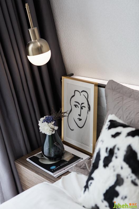 具有顆粒質(zhì)感的墻布肌理在燈光的渲染下,簡(jiǎn)單而不失趣味,使墻面更有層次感。