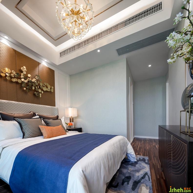 天花區(qū)域隱匿的暖色燈帶渲染慵懶輕松的氛圍,有利于營(yíng)造一個(gè)舒適的睡眠空間。