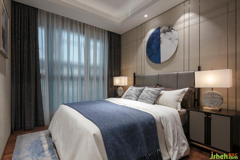 和兒童房類似,老人房同樣運用對稱手法,并融入圓形元素,材質(zhì)和色調(diào)有所不同,讓空間多了一份沉穩(wěn)和從容。