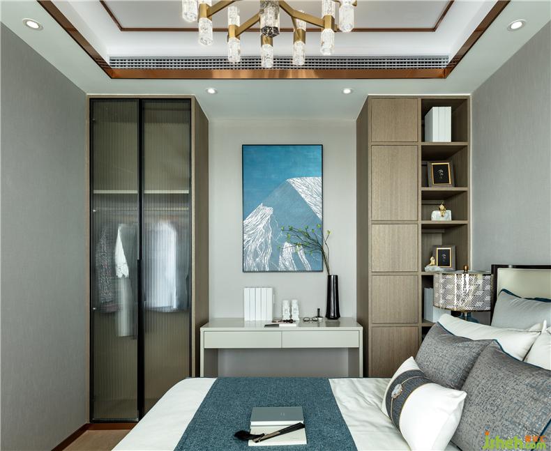 主臥空間,融入東方禪意哲美,素白層巒的山紋與藍(lán)的布局通達無限心境,樣板房設(shè)計是靜待心安的視覺感染,更是久處不厭的靈魂陪伴,棲息身心。