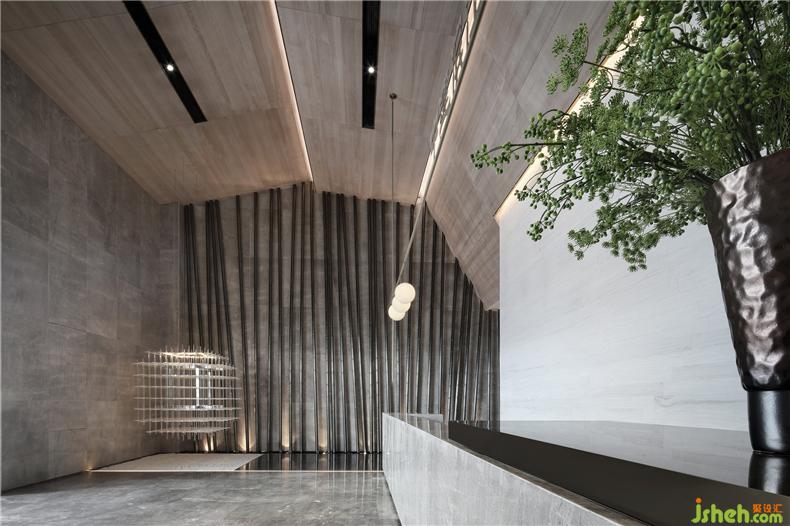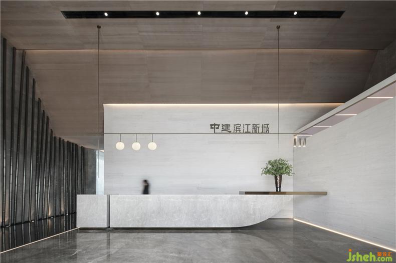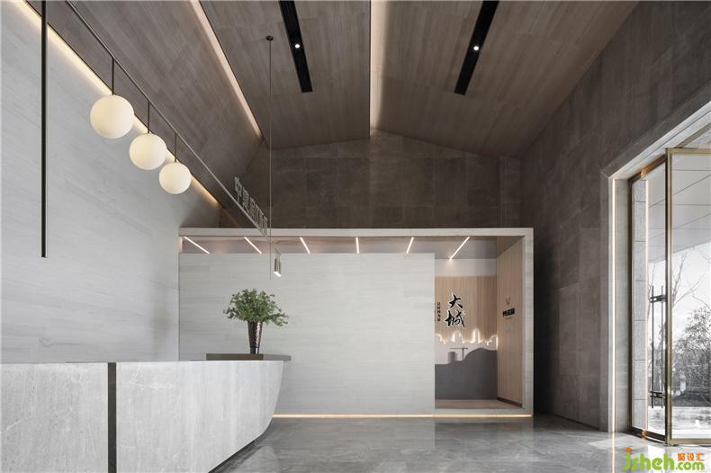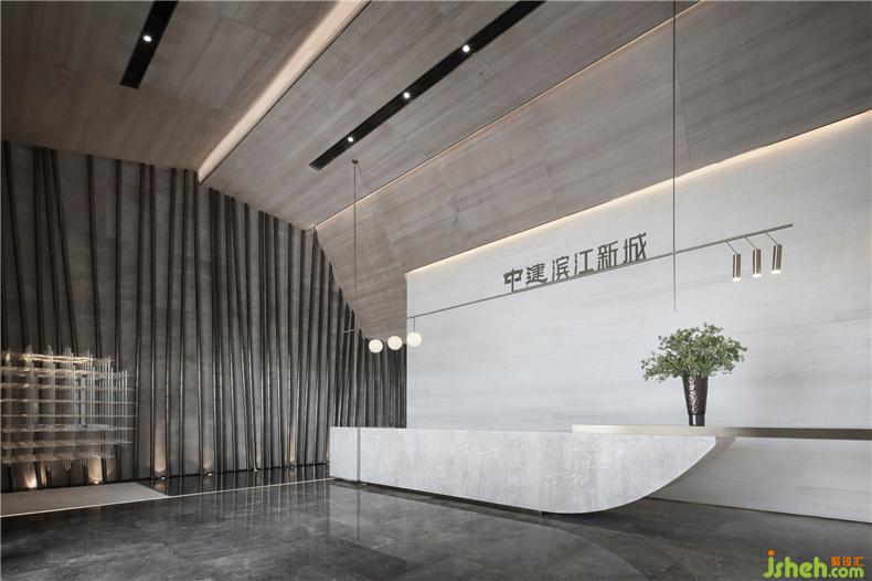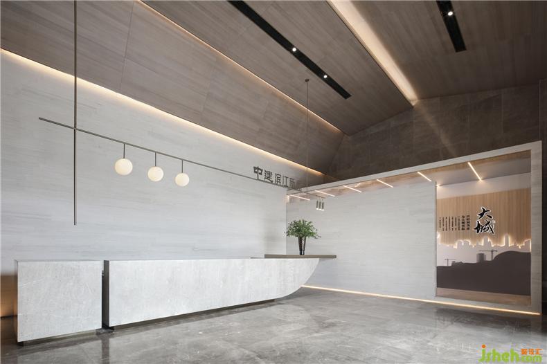 “流目浦煙夕,揚(yáng)帆海月生”,接待總臺(tái)以簡(jiǎn)、靜、峻潔的“漁舟”呈現(xiàn),營(yíng)銷中心設(shè)計(jì)用極簡(jiǎn)的手法展現(xiàn)藝術(shù)境界,奠定項(xiàng)目中的主體地位。